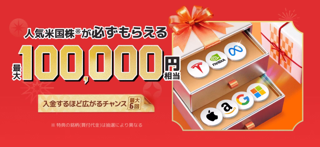 口座開設と入金をするだけで、抽選で人気の米国株が当たるチャンス!