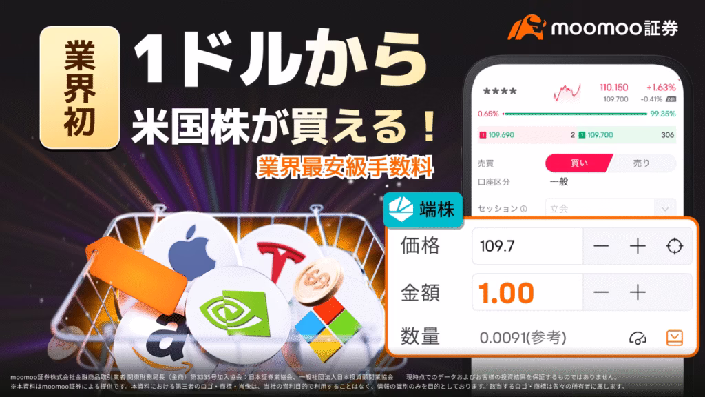 moomoo証券では、1ドルから米国株を購入することができます。少額から投資できるので投資初心者の方にも安心して攻めの投資に挑戦できます!